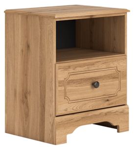 Country rustic. Vintage inspired. However you see it, you’re sure to be charmed by this nightstand. Adorned with a chic drawer knob and a warm oak grain finish, it offers a relaxed mix of picturesque aesthetics. Its storage space gracefully welcomes bedside necessities. And built-in USB charging adds a dose of modern convenience.Read More